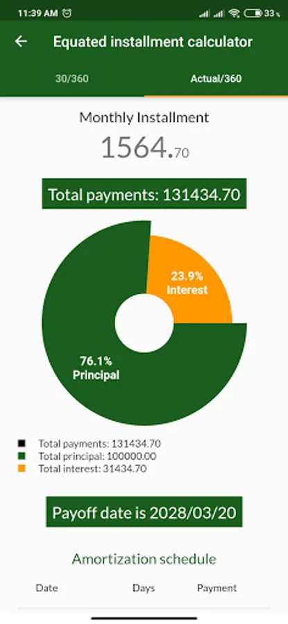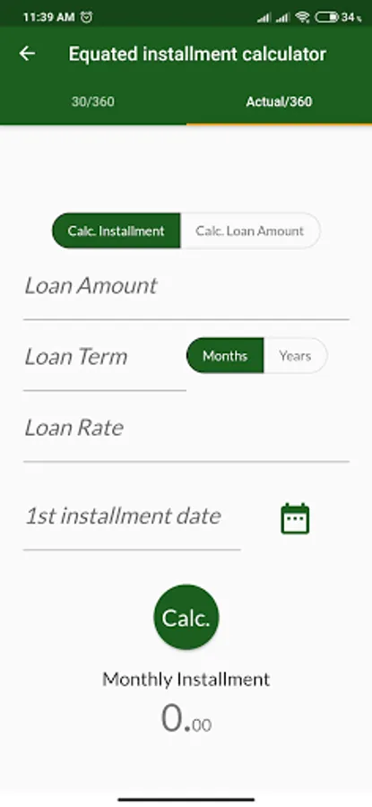 - EMI (Equated Monthly Installment) Calculator with two methods (Actual/360 And 30/360)