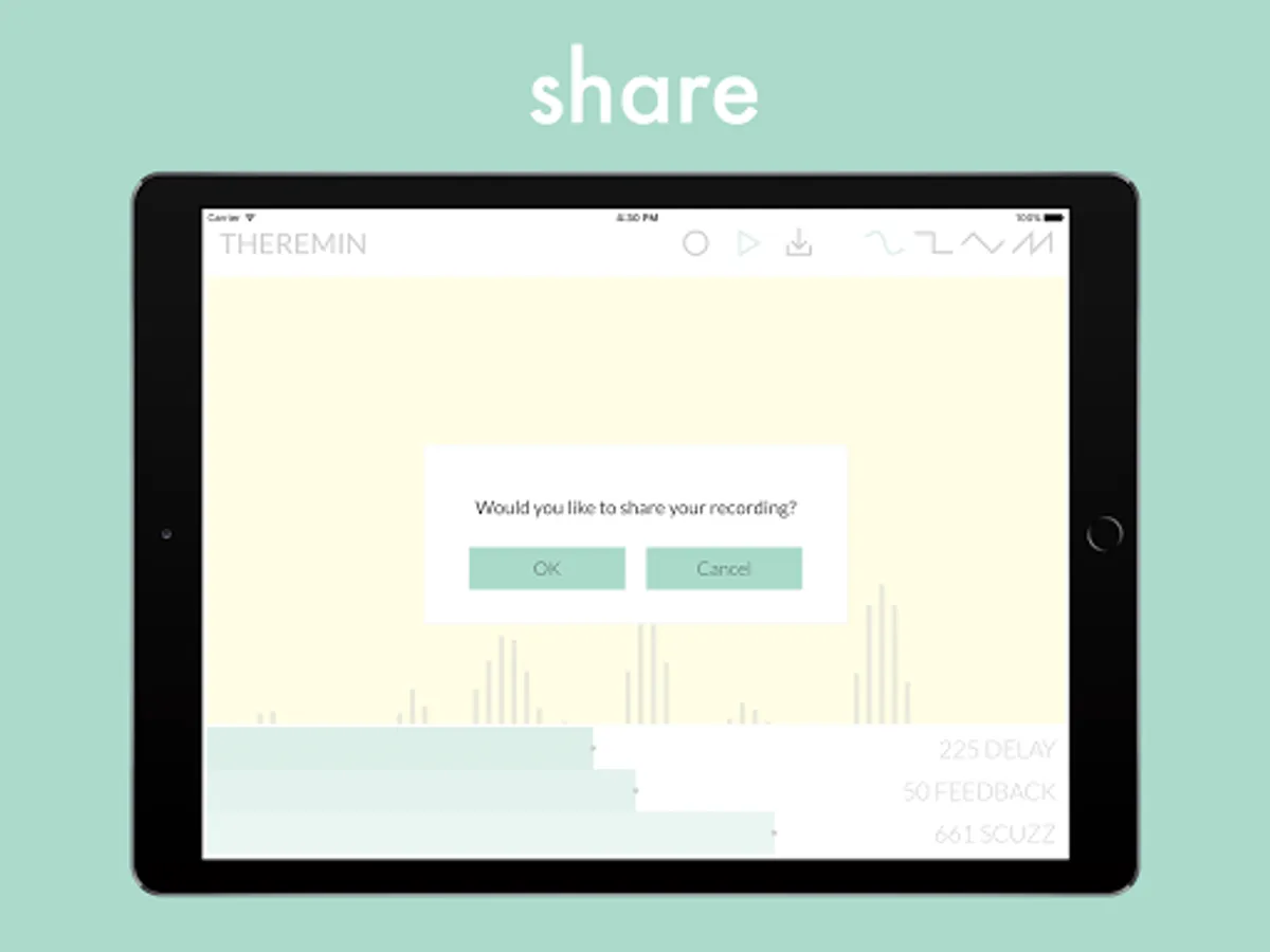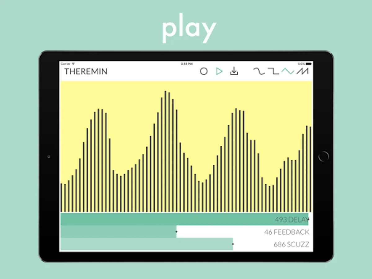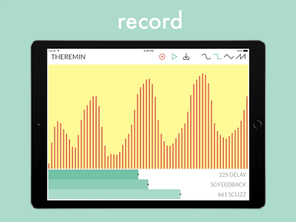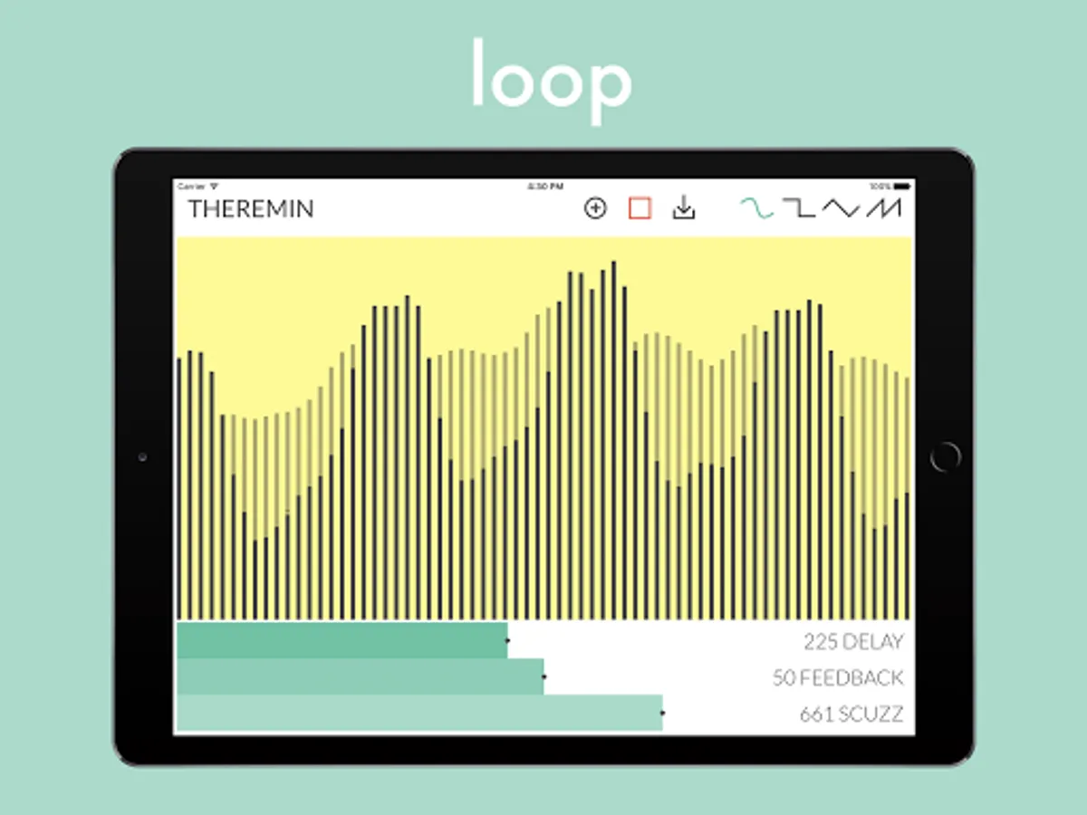This is a multitouch synth instrument. Play it by touching and swiping the screen, changing the waveforms and sliding the effects to create anything from traditional sci-fi theremin sounds to deep scuzzy soundscapes. Use the looper controls to record, loop and overdub layers. Then if you wish to save or share your recording, hit the download button to send your wav file to other compatible apps like Messages, Email, Dropbox etc.