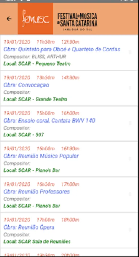 Festival de música clássica, onde no período da manhã e destinado a estudos de classes com professores renomados de cada instrumento. Nos outros período acontece os ensaios das obras que serão executadas nos concertos que ocorre todos os dias durante o dia nas praças, shop centers, Igrejas, etc..., e, a noite o grande concerto no auditório da SCAR (Grande Teatro), aberto para o publico em geral.