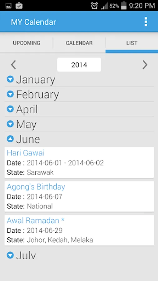 - Shows public holiday and school holiday