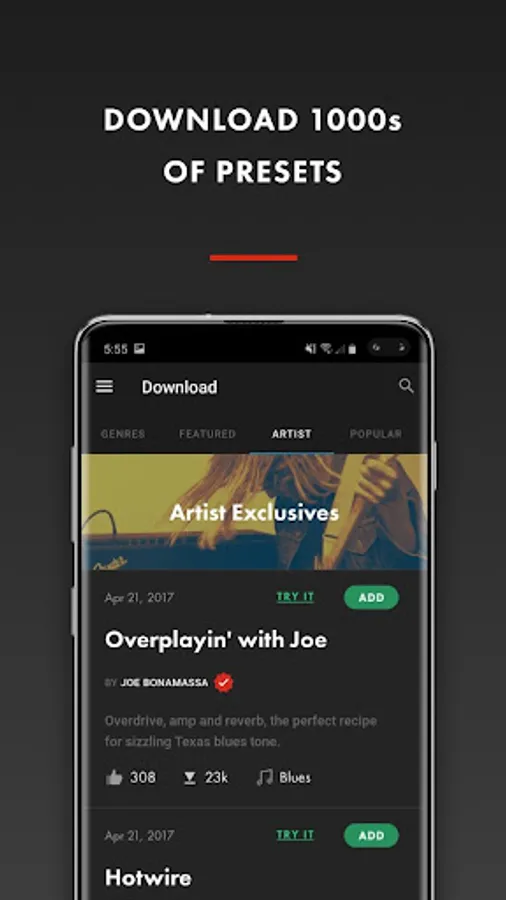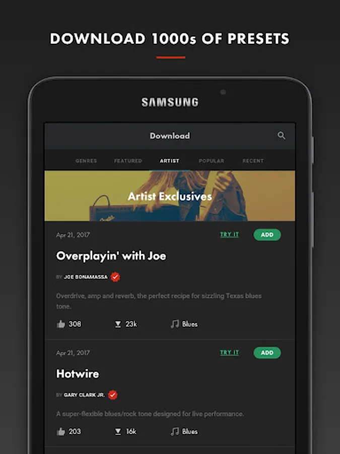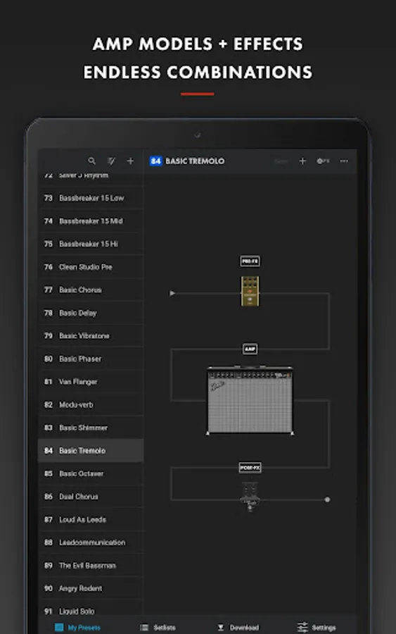 • Discover presets by well-known artists & players created exclusively for Fender Tone™.