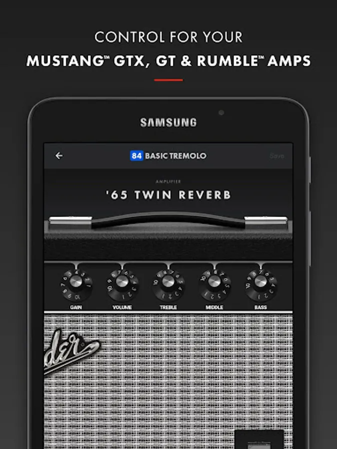 ** THIS APP REQUIRES A FENDER® MUSTANG™ GTX, MUSTANG™ GT, OR RUMBLE™ STAGE/STUDIO AMPLIFIER **