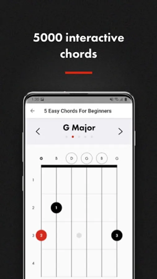 • Interact with over 5000 guitar chords by dragging your finger across the diagram to hear the chord before you play.
