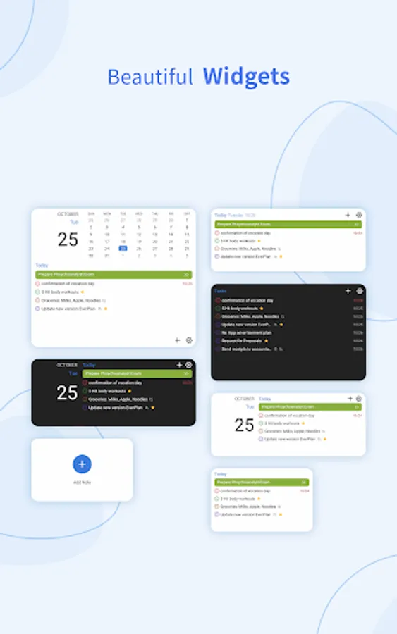 • Flexible widgets for any planner. Whether you’re a calendar warrior, a task master or note keeper, choose the widget that’s right for you.