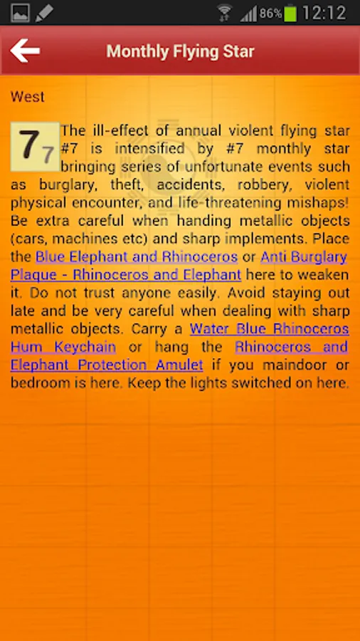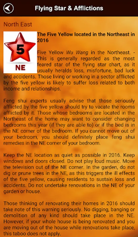 Last but not least is the Feng Shui Kua formula. Your Kua Number (1 to 9) is calculated using your birth date and gender. Every Kua number will have four favorable (Prosperity, Health, Romance and Personal Growth) and four unfavorable (Mishap, Five Ghosts, Six Killings and Total Loss) directions. With the help of the App’s custom Kua compass under your fingertips, you can conveniently determine these directions, anytime, anywhere! You are advised to always try to face your good directions when you’re working, having an important meeting, watching TV or sleeping, and avoid the unlucky ones. With constant application, you will notice a considerable improvement in your luck.