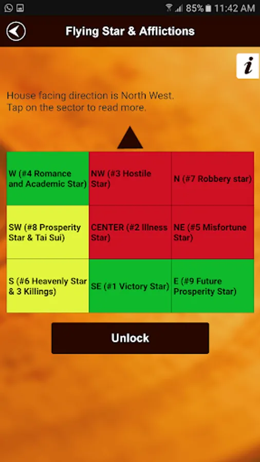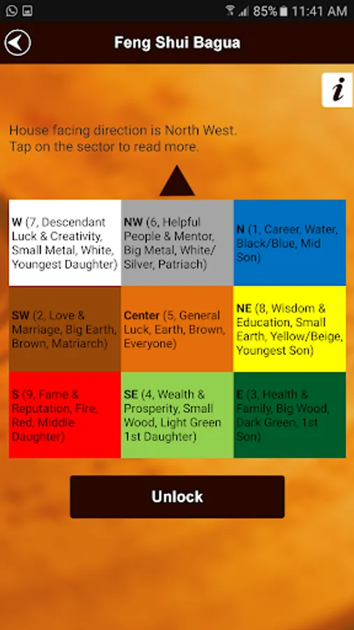 Feng Shui Bagua Aspiration formula is a popular Feng Shui theory that’s embraced by many Feng Shui practitioners. It is claimed to have brought about unbelievable effects at an amazing speed by people who have applied it. According to this formula, each of the nine sectors of your home/office governs a type of luck e.g. career, love, health & wealth luck etc. and affects a particular person e.g. the patriarch, matriarch, eldest son etc. Knowing what to do with this knowledge will help to boost your luck and achieve your aspirations. Similarly, the App allows you to lock the Bagua Map to your property’s facing direction so that you can easily transfer it to the layout plan of your home/office.