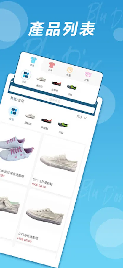 There are categories in Apps, distinguishing different categories such as men's clothing, women's clothing, boys, girls, etc.