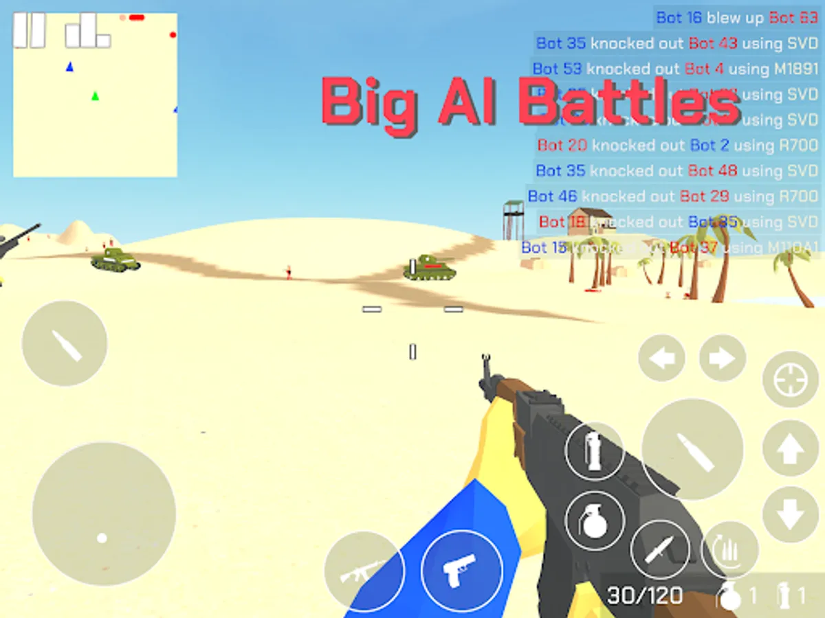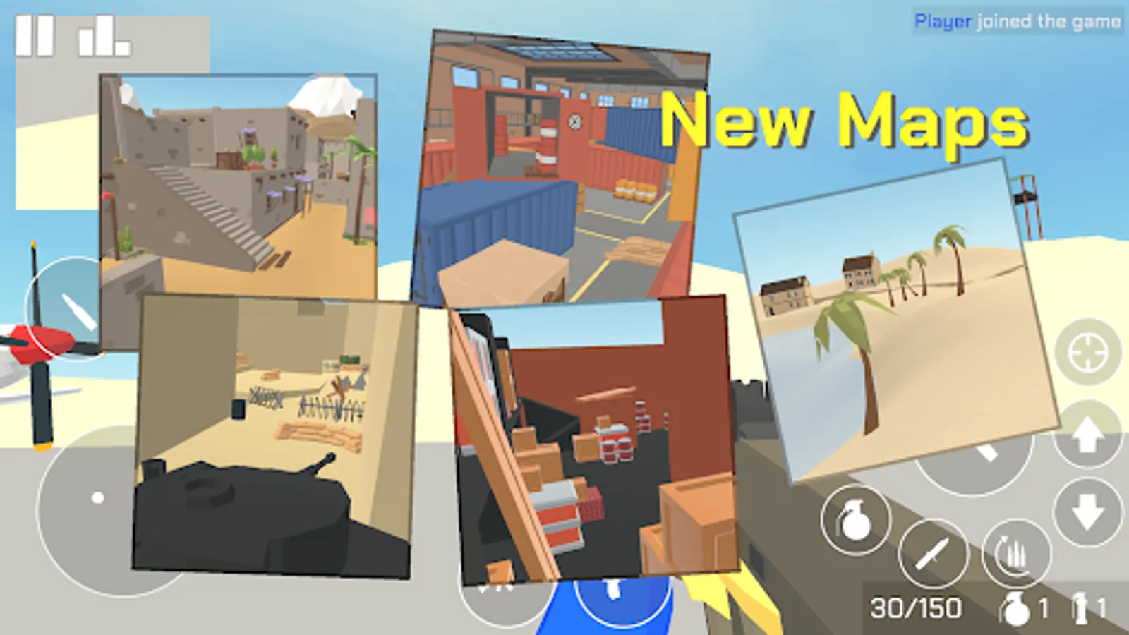 Each map has different features, and some have tanks, static machine guns, and airplanes. Play intense matches on small maps or drive vehicles around in the desert!