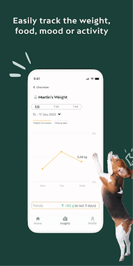 * Weight Insights: When health problems occur, our pets tend to gradually lose weight in a way that is not visible to the naked eye. Being able to identify weight fluctuations, in combination with other symptoms, can help you recognize health problems sooner. Additionally, weight is the leading cause for the most recurring diseases in cats and dogs (arthritis, diabetes, urinary infections, etc.). By regularly tracking weight, our app can give you insights into your pet’s natural weight fluctuations, and we will notify you when significant and concerning changes have been noticed.