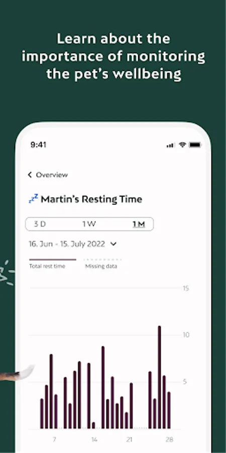 * Activity Insights: Activity is an important part of ensuring your animal leads a healthy life. Additionally, your pet has natural activity levels, but this changes when health problems occur. Knowing your pet’s natural activity levels is crucial in being able to identify concerning changes. Regularly tracking your pet’s activity levels ensures they get the correct amount of movement.