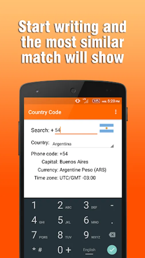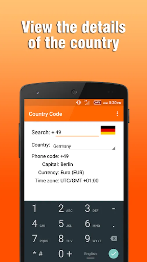 Haven't you ever received a message from a foreign and you didn't know where it was from? Or have you ever wanted to search something about a country, without an Internet connection? Then it won't happen again! Country Code shows the following information of 228 countries:
