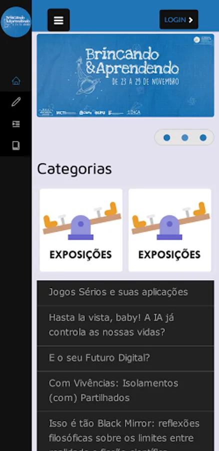 Playing and Learning is an event that brings together various interactive activities of science, technology and art and has as its main objective scientific dissemination and social inclusion through science and technology.