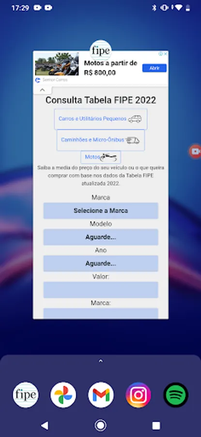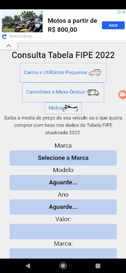 Search the updated Fipe Table of Cars Motorcycles Trucks Buses etc