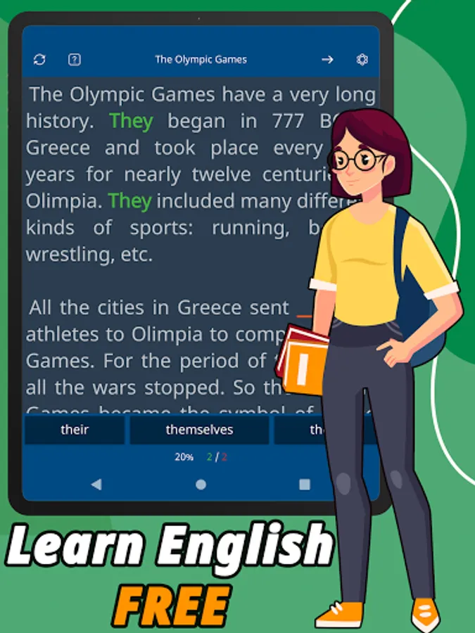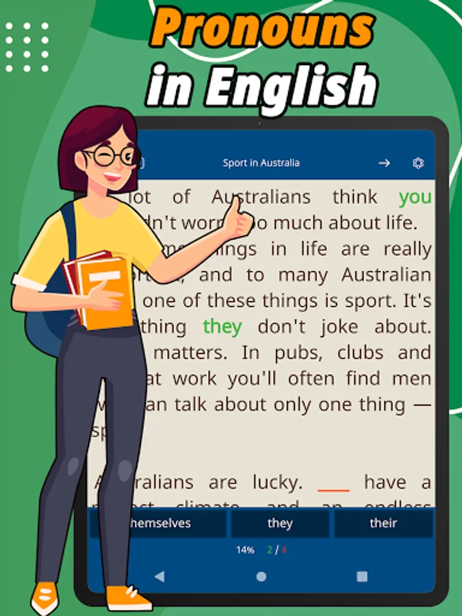 Thanks to books and texts of varying complexity, you can use our application regardless of your level of English. Even beginners to learn English pronouns will be able to use our app! And our effective technique will help them with this!