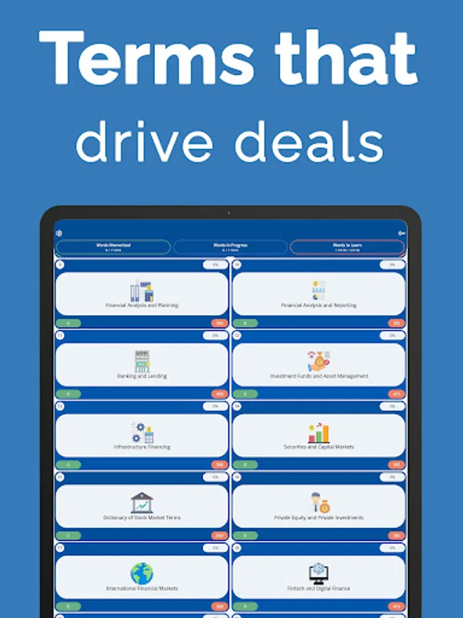 Learning English doesn’t have to be boring or difficult! Our app offers eight exciting ways to study financial vocabulary, making it easy to find a method that works best for you. Use flashcards, track your progress, and mark words as mastered, in progress, or on your to-learn list. With topics ranging from banking to economics, you’ll be speaking the language of finance in no time.