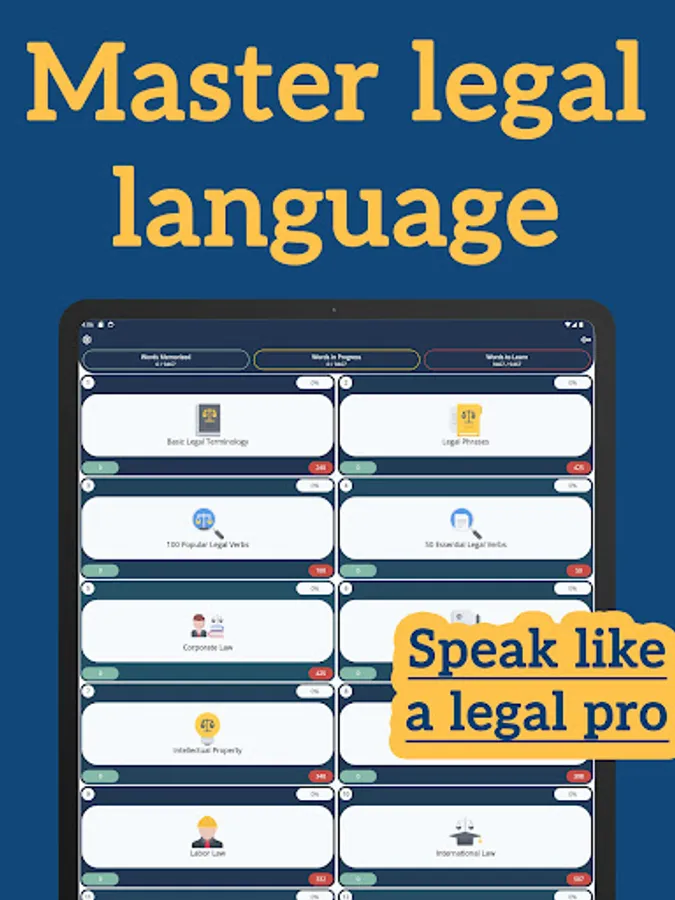- Quality Learning Resources π: Our app offers a variety of high-quality learning tools, including flashcards, quizzes, and customizable study plans, all designed to cover every aspect of English for legal professionals.