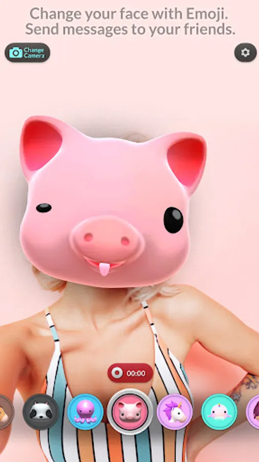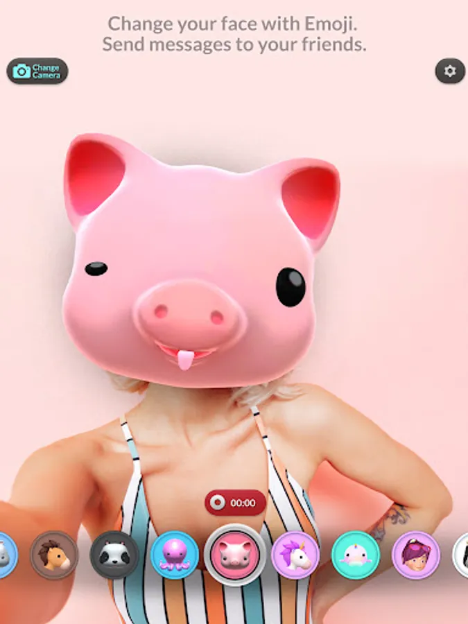 Change your face with Emoji and send messages to your friends. You can swap your head with nicely animals such as: Narwhal fish, Elephant, Octopus, Cow, Monkey, Sheep, Zebra, Mouse, Deer, Unicorn, Panda, Horse, White Bear, Crocodile, Beaver, Penguin, Dog, Cat, Leopard , Tiger, Bunny, Bat, Squirrel, Mole, Owl, Opossum, Porcupine, Raccoon, Shark, Lizard, Skunk, Turtle, Wolf.