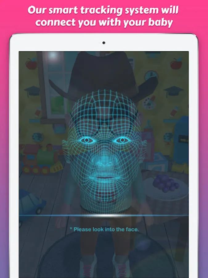 It’s similar to Animated Emojis. Using the front camera of your smartphone, the Face detection will analyze your face, and it will your baby’s face with your own face. And now the baby will be doing the same head movements you do. Super fun, and It’s real time. The baby will look like you.