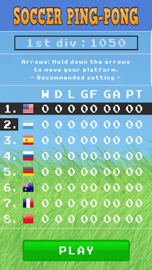 Soccer Ping-Pong always will challenge you, each one of the 224 soccer teams have different characteristics available (speed, width, strength), so if you win with one team you can choose another one with worse skills, and if you still find it easy, always you can increase the difficulty level, but be warned that in extreme level there are not many users able to beat the machine.