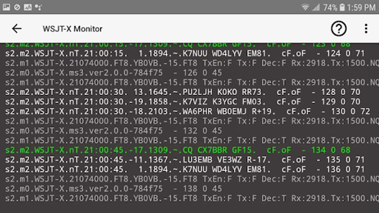 WiFi only. Use your phone or tablet to monitor WSJT-X running on your computer. Join your family while still keeping up with what your station is receiving. Works for all modes (FT8, FT4, WSPR, MSK144, etc). Extensive help menus, including how to configure WSJT-X or JTDX. It displays nicely on tablets as well as phones.
