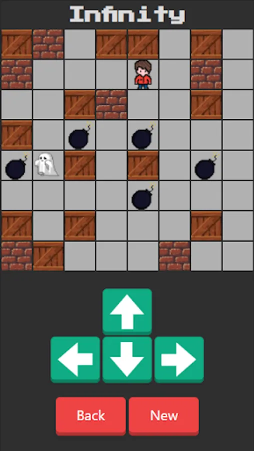 Obviously inspired by the classic Sokoban game, this game has some new variants and the possibility to play infinite levels!