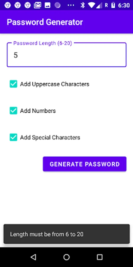 un número entre 6-20 (ambos inclusive), especificar si tiene mayúsculas, números y caracteres especiales.