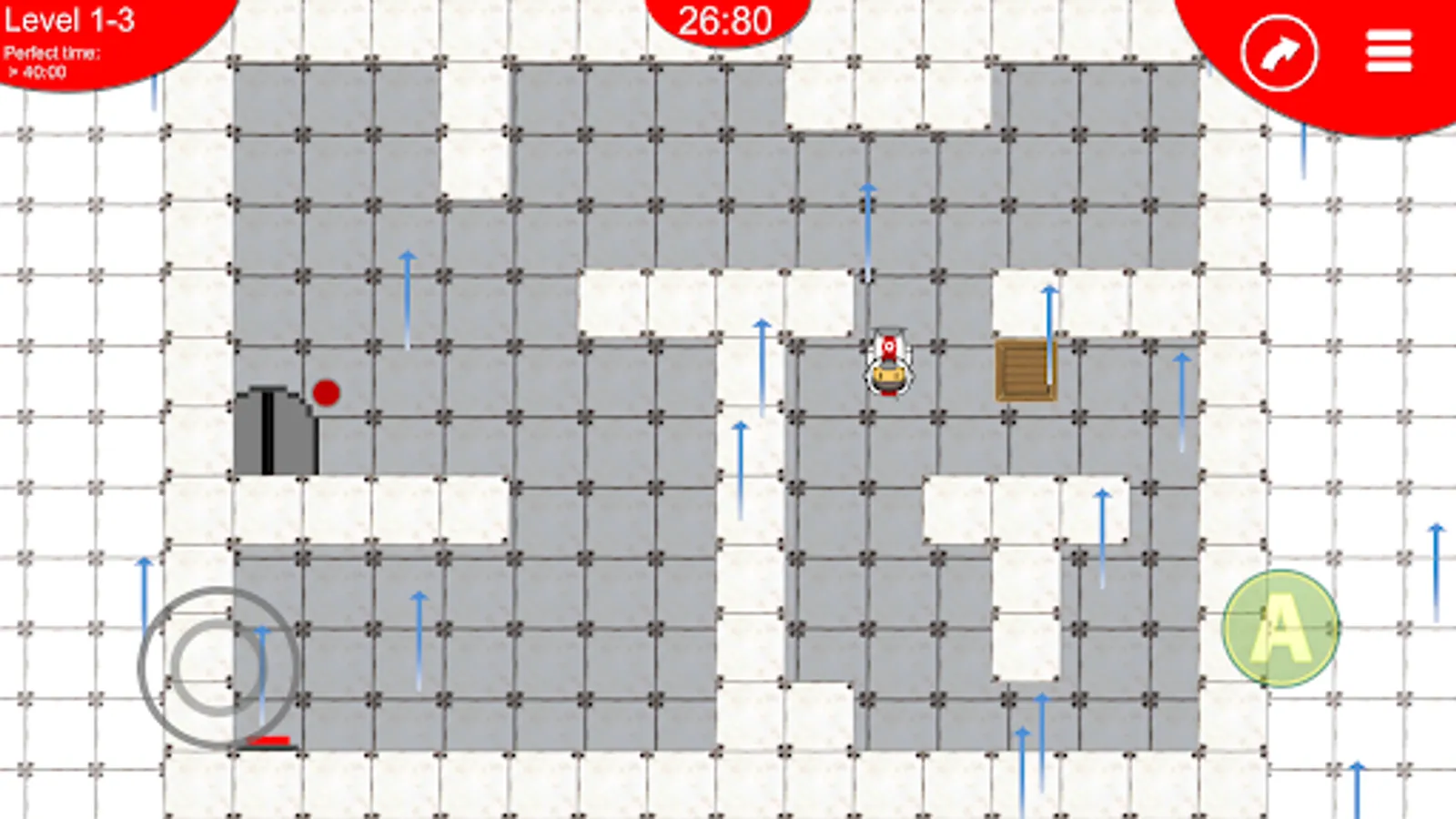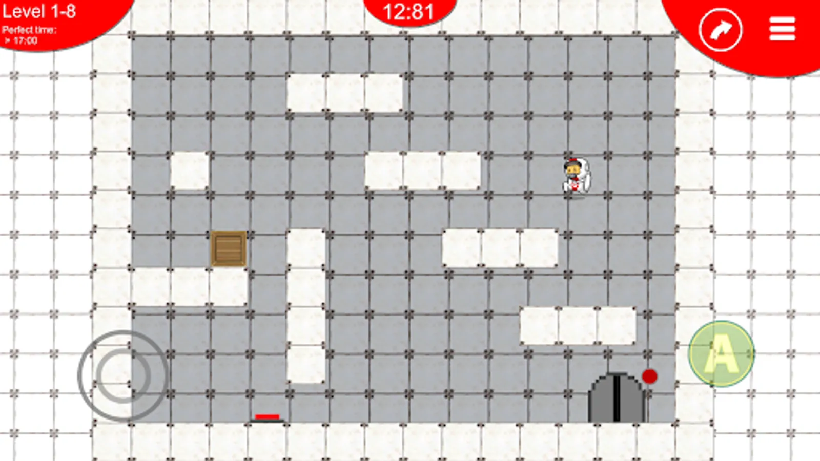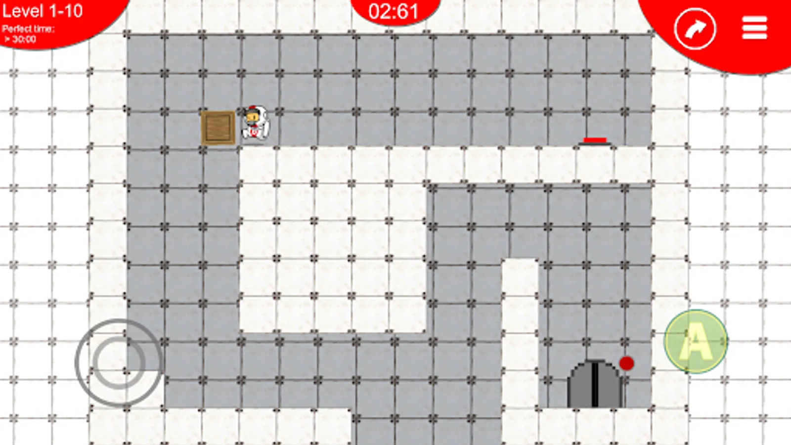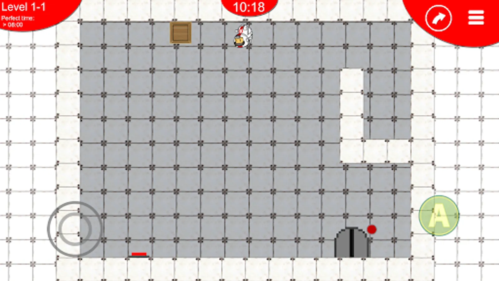 Touch the red button with gravity, is a 2D platform game which challenges you to touch a series of buttons to open a door and escape to the next level, something special about this game is the ability to use gravity at will, so you can touch buttons that with normal gravity you could not, for example a button on the ceiling or use boxes to press buttons. Challenge your logic in these levels designed to challenge your brain.