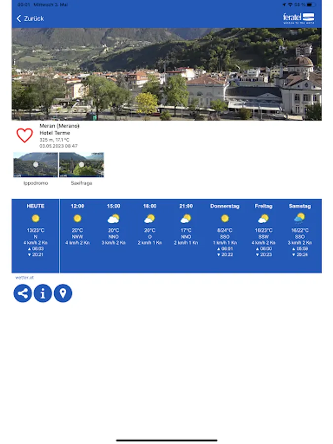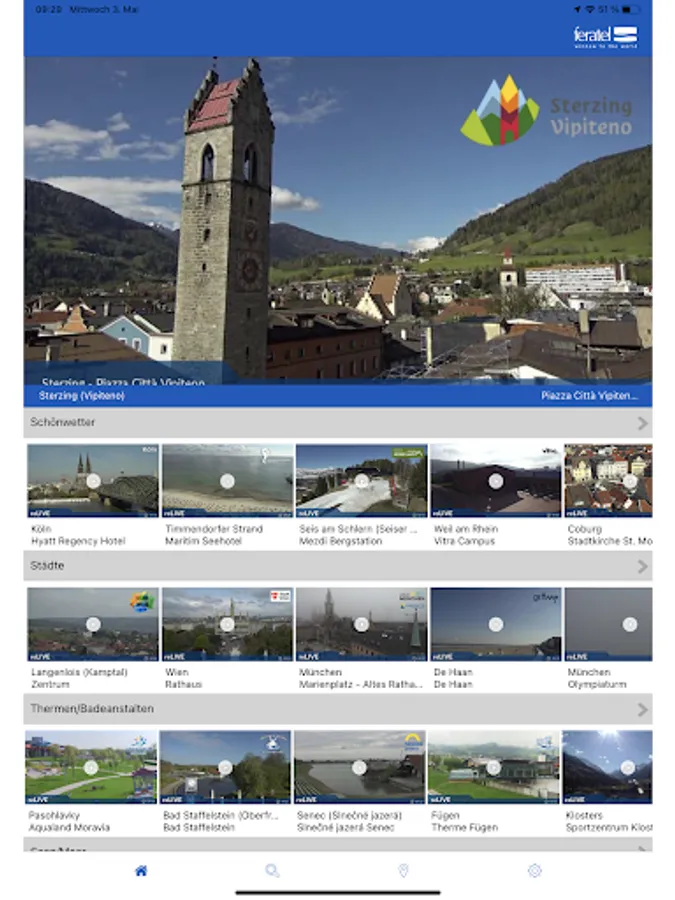 You are planning holidays or a city trip and would like to know what the weather will be like? Then have a look at the feratel webcams – the most accurate weather information since the invention of apps. Live panorama streams in crystal-clear sharp quality, to be downloaded anywhere and anytime for free. Available in the following languages: German, Czech, English, French, Italian and Slovak