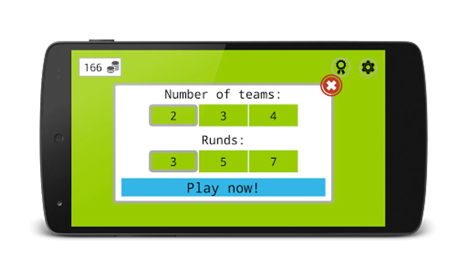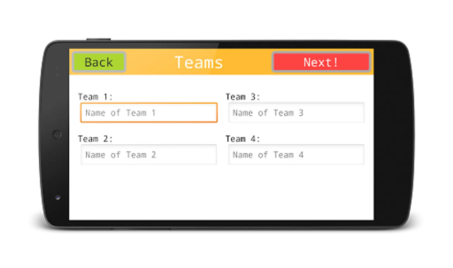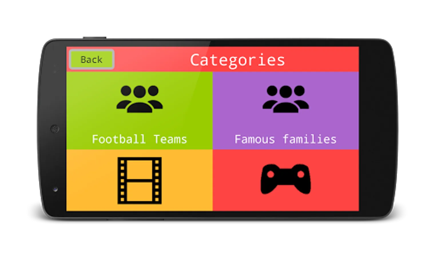 This game is based on the Activity game. It can be played by 4 teams at a time, and each team has to have 2 members. On of the teams member has to hold the phone on the forehead,the other has to help his teammate to guess the word by describing it or acting it out.