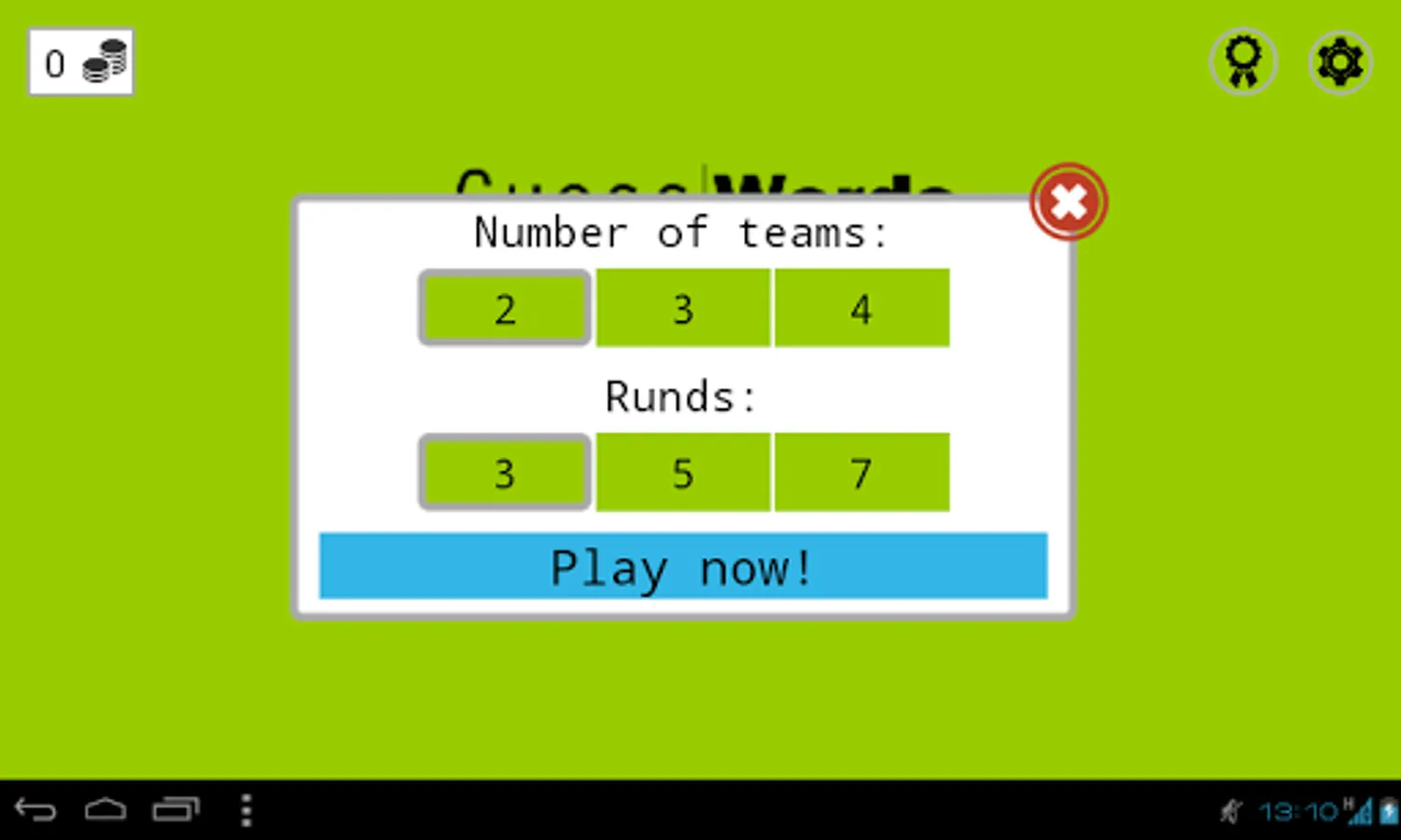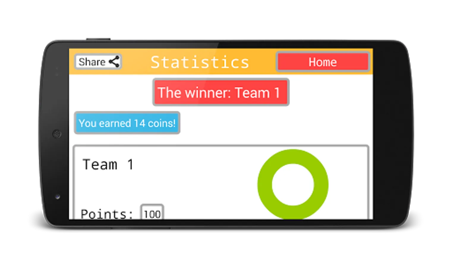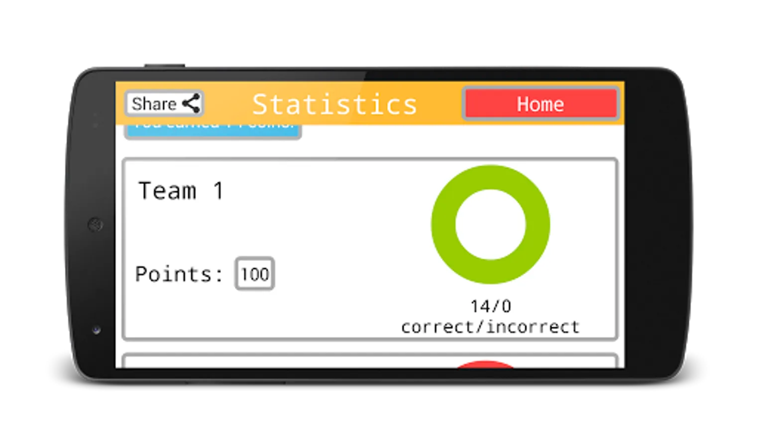 This game is based on the Activity game. It can be played by 4 teams at a time, and each team has to have 2 members. On of the teams member has to hold the phone on the forehead,the other has to help his teammate to guess the word by describing it or acting it out.