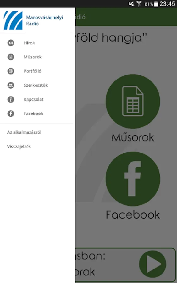 The Targu Mures alkalamazása radio telephone is designed to provide students with the smart phone icon also follow the news and radio shows.