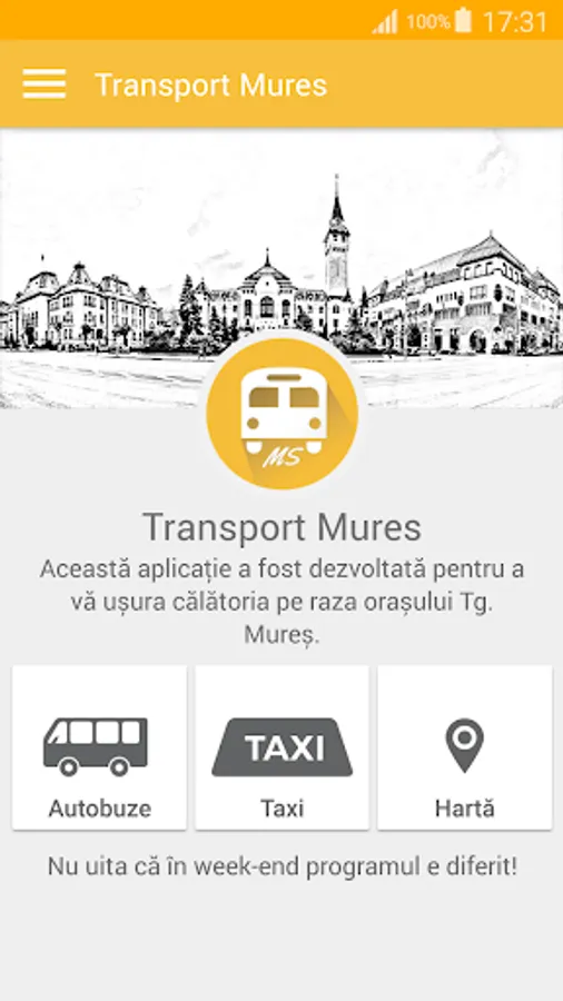 This application was developed to ease your journey across the city Tg. Mures.