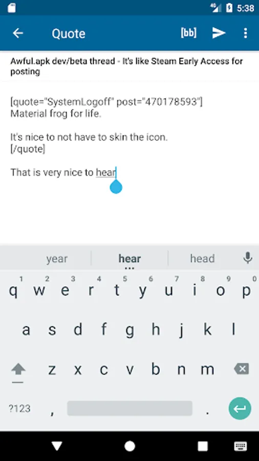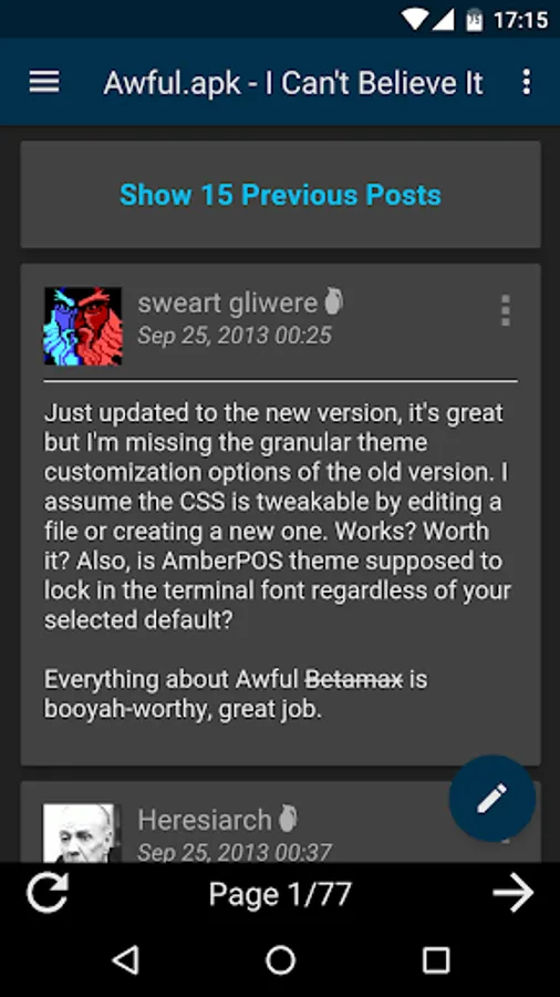 If you have problems with the app, don't just give the app a bad review. We don't really care about or read them for that matter. Instead DO post in the Awful Android app thread in IYG.