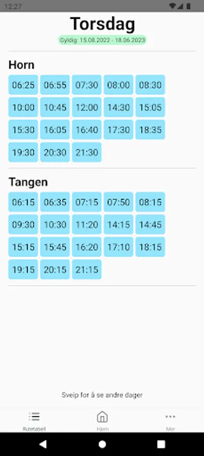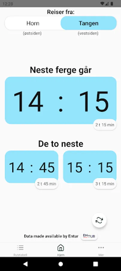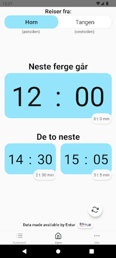 - Overview of the ferry times in a timetable