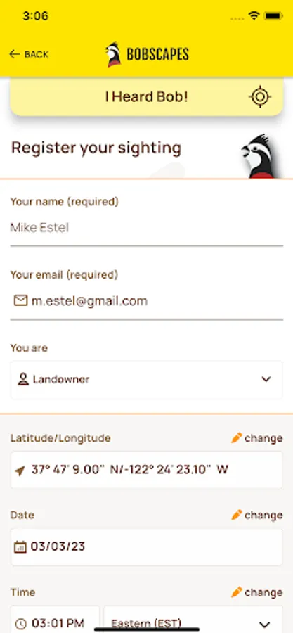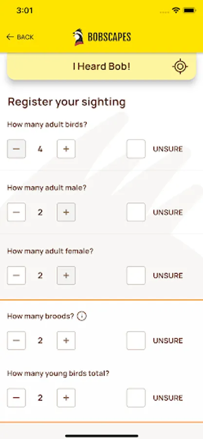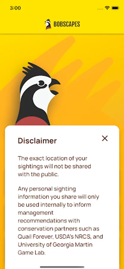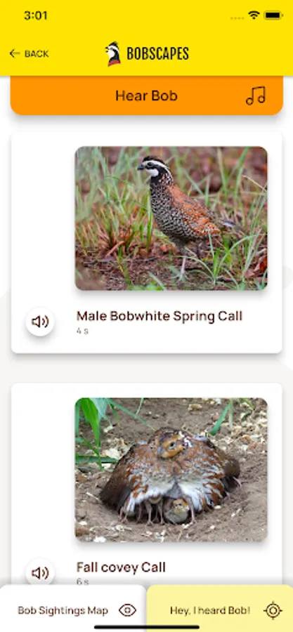 App for reporting sightings related to Northern Bobwhite