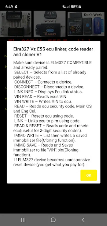 Elm327 Holden VZ V6 E55 Ecu Linker and Code Reader.