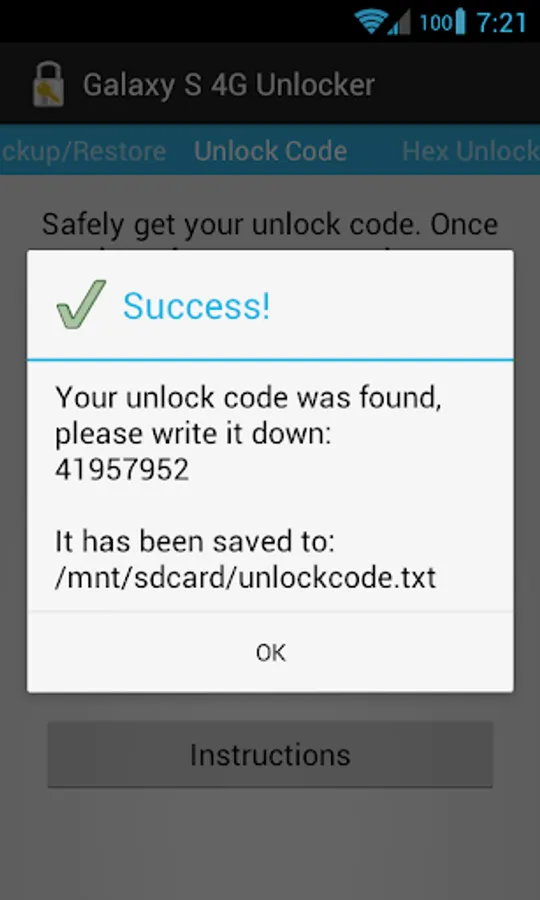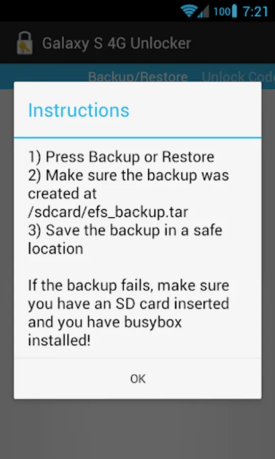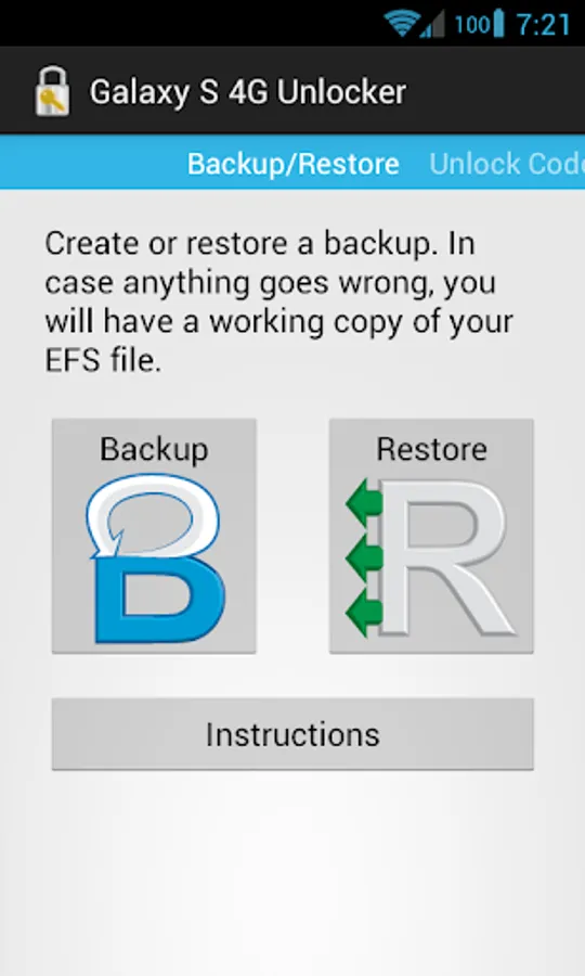 The app writes your unlock code (/sdcard/unlock_code.txt) and backups (/sdcard/efs_backup.tar) to the SD card