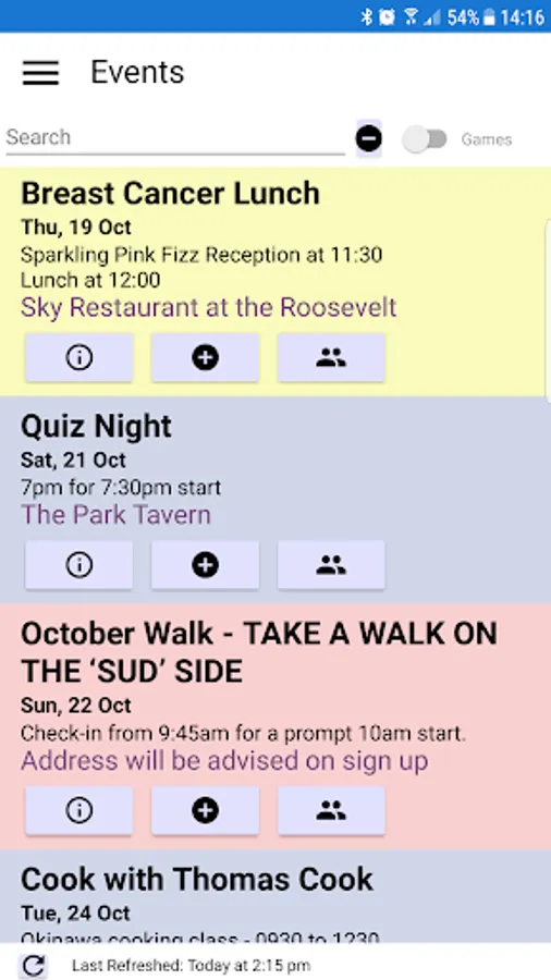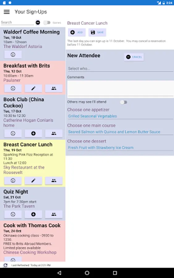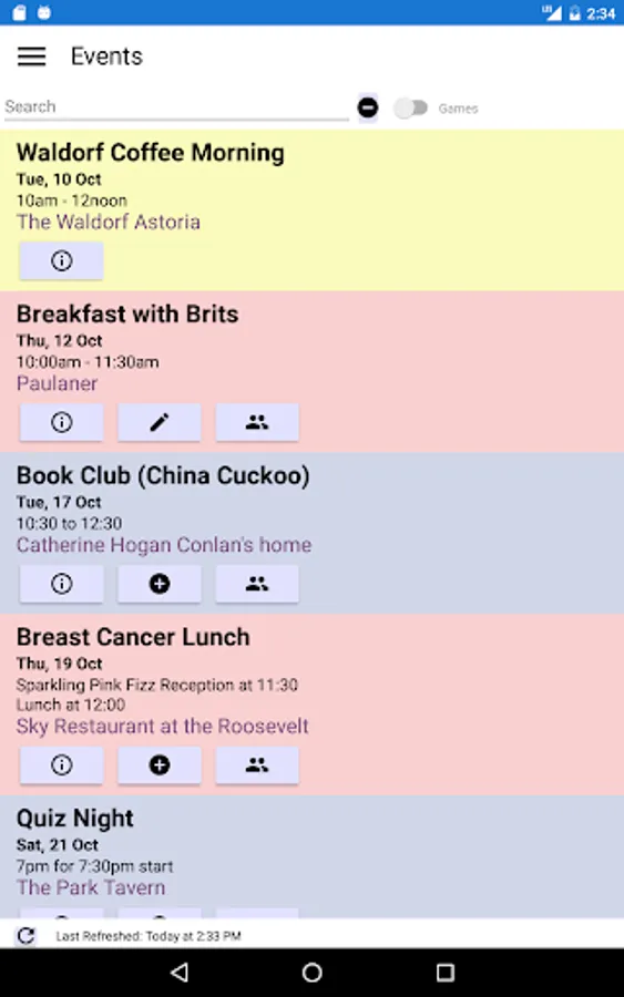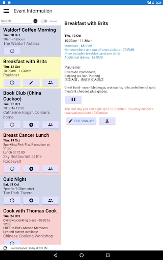 The Brits Abroad App allows existing members to log in and see the upcoming events, and sign up to them. Members can also manage their contact details.