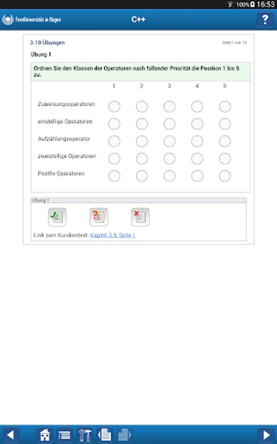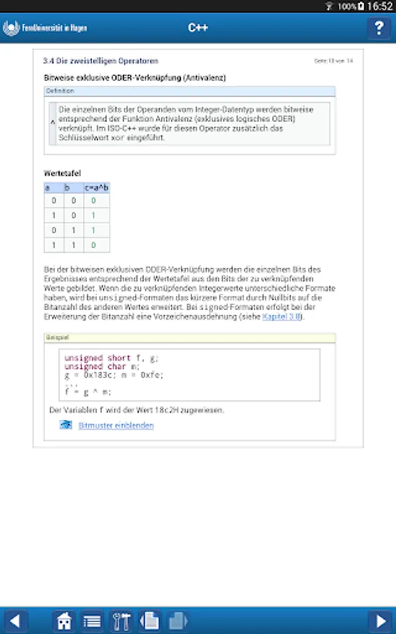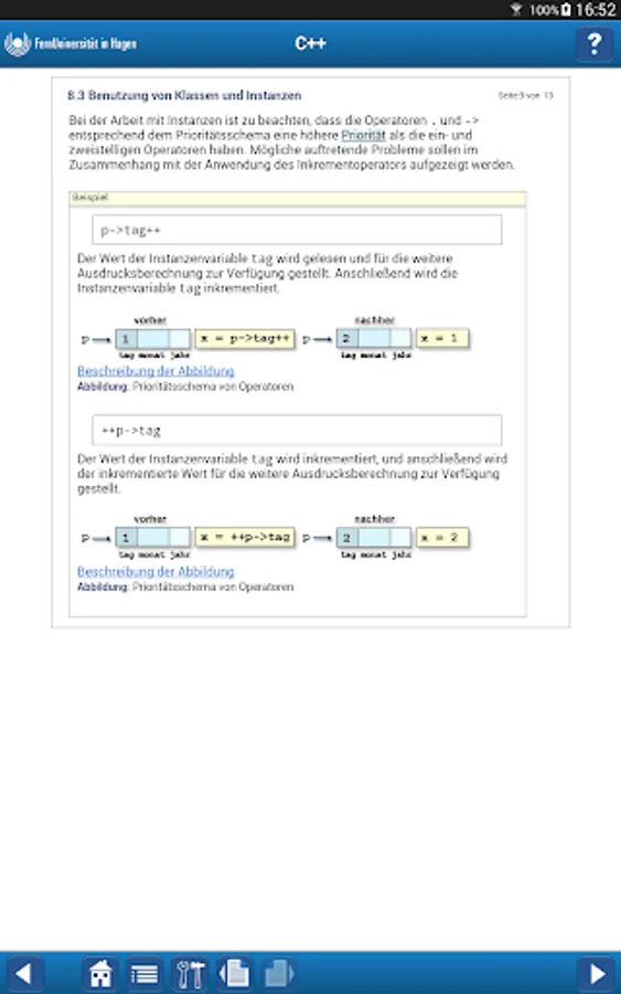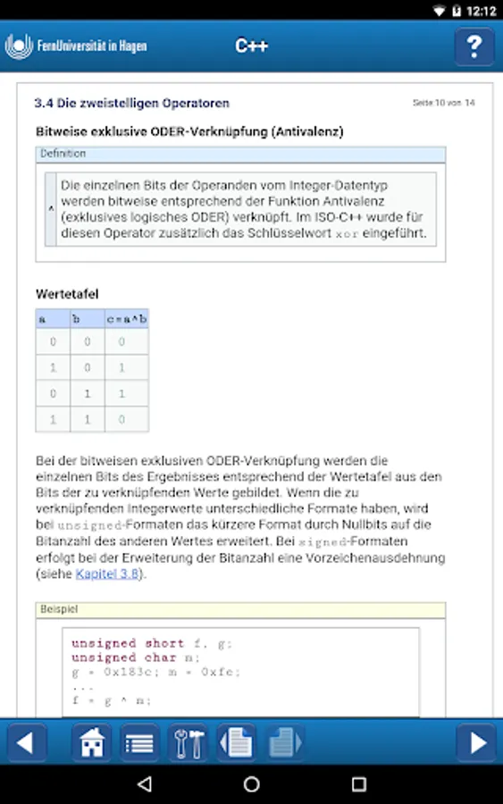 The aim of the course is to give you an overview of the structure of the C ++ programming language and to train the extent that you are able to write their own larger programs themselves. The C ++ - course includes to numerous exercises and appropriate at the end of each chapter questions for self-control. The treated sample programs are selected so that the concepts and benefits of object-oriented programming are visible. To process these program examples and to practice the language elements has its own C ++ - Compiler essential. Compiler settled - hence the price of the GNU C ++ was.
