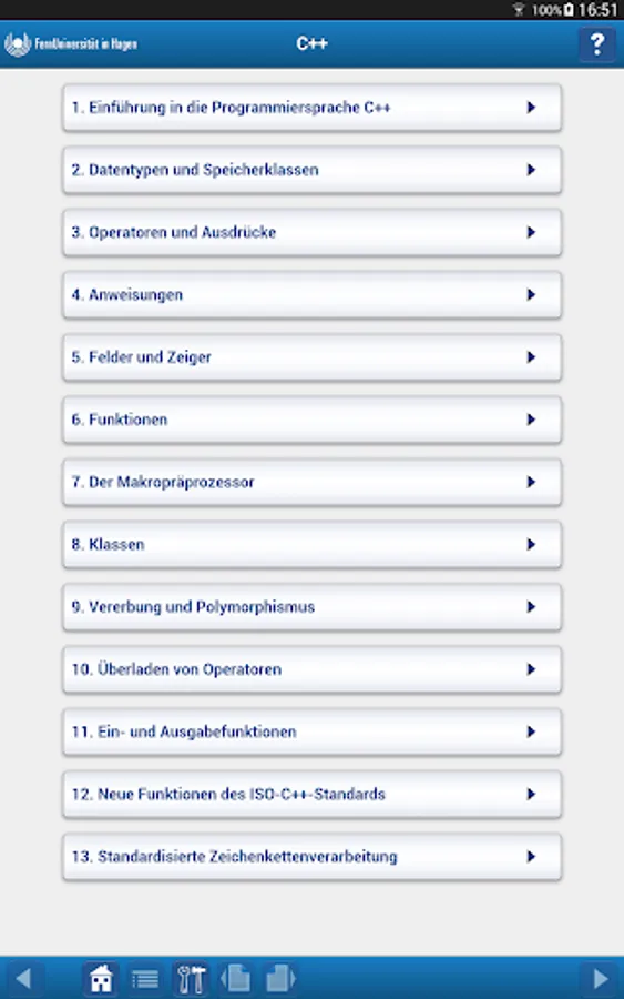 After a general introduction to C and C ++, the built-in data types, storage classes, operators, expressions, statements, pointer, fields and functions are handled, with special emphasis on the extensions of C ++.
