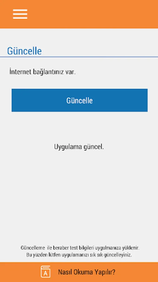 If you get a "TEST NOT FOUND" error, open your internet and press the "Update" button in your application, and wait for the update screen to close. You can then read.