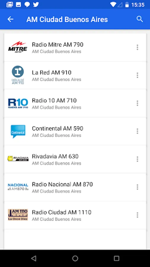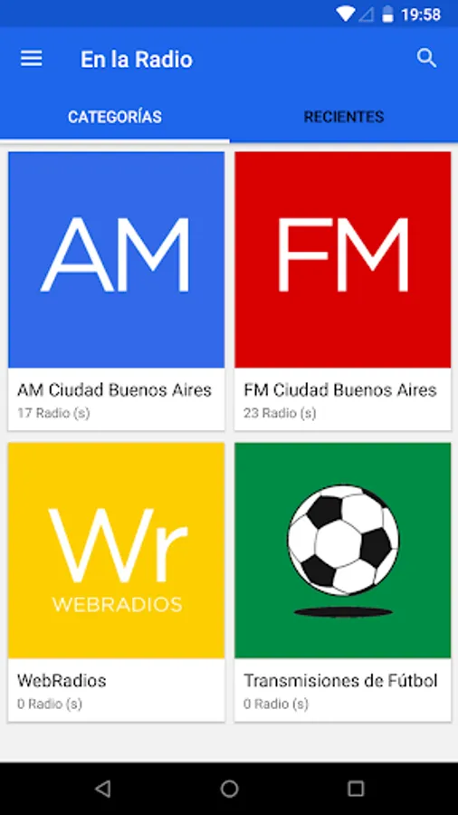 You will find the AM and FM of the city of Buenos Aires, WebRadios and a section of the stations that carry out the football transmissions.
