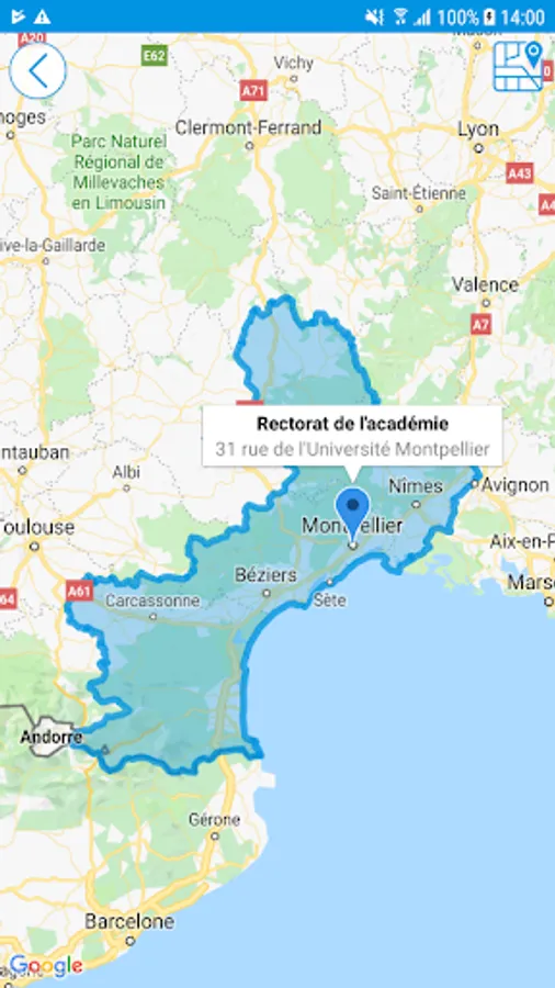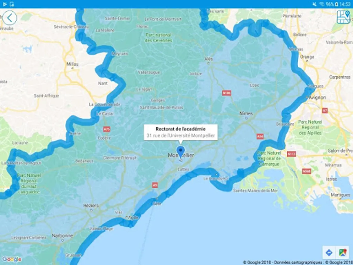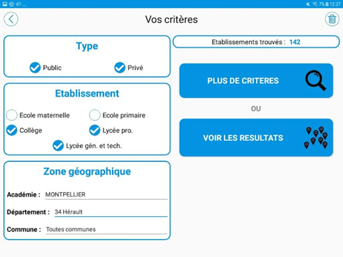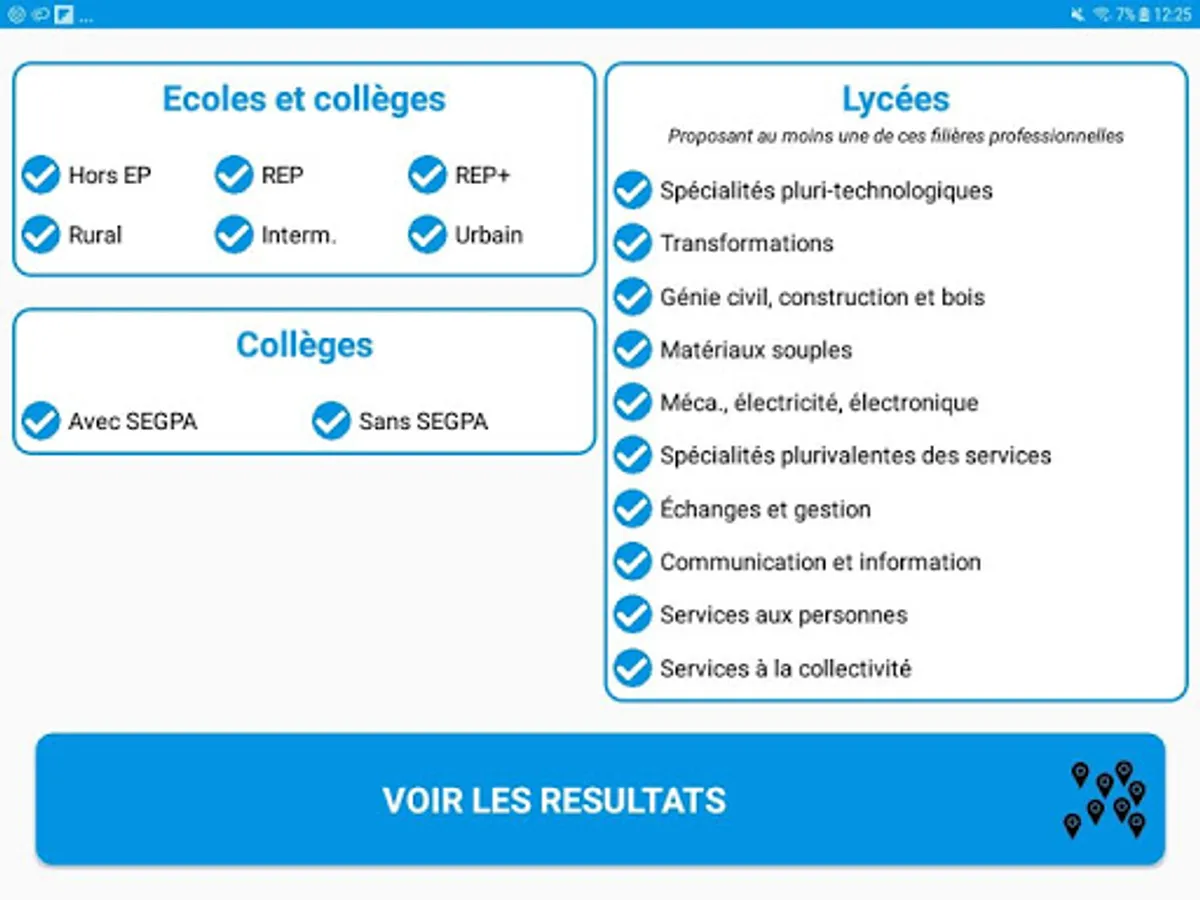 • Visualize on the map the establishments of the targeted region (academy, department or municipality)