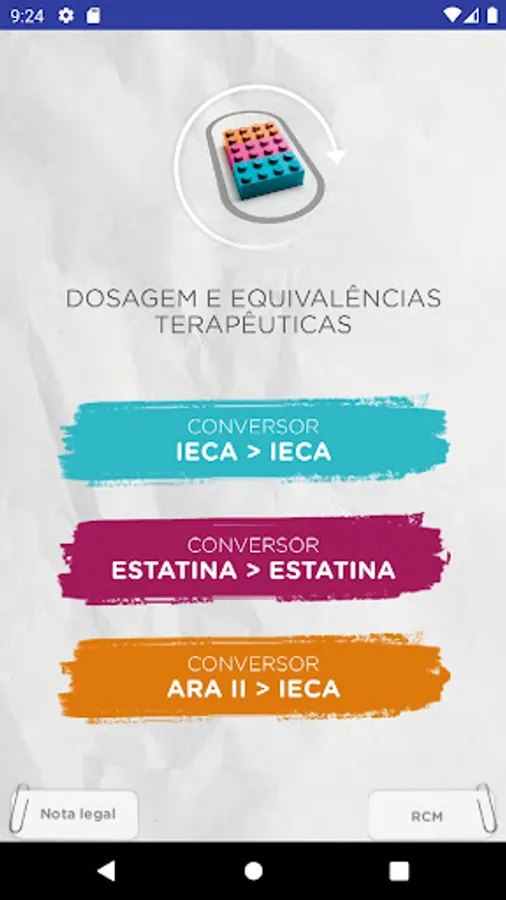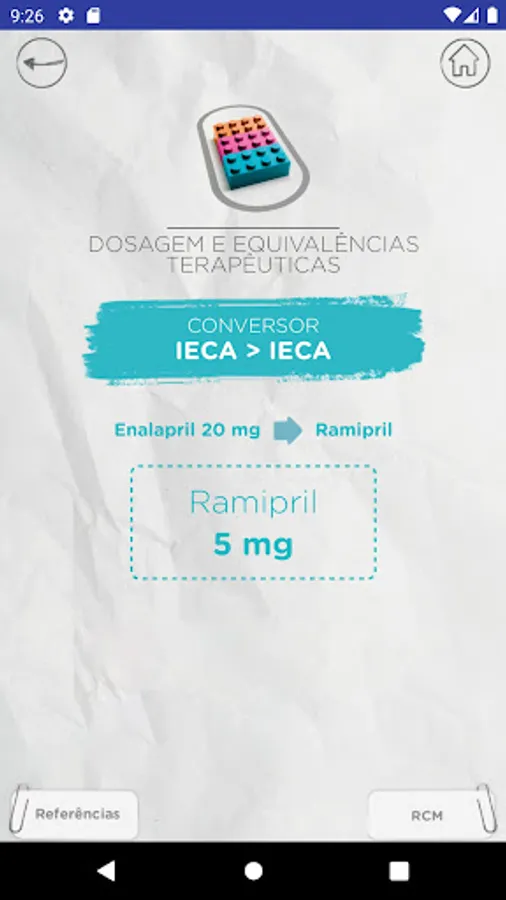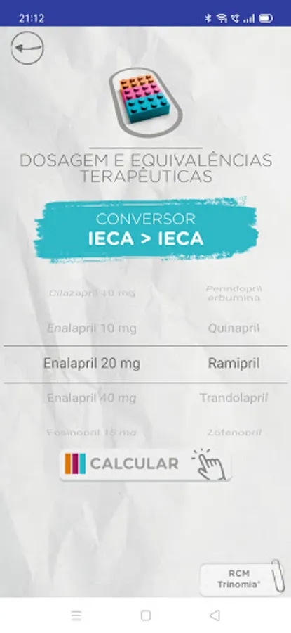 CARDIOEQUIVALENCES contains three buttons that allow: converting the dose of an ARA II to the dose of an ACE inhibitor, converting the dose of an ACE inhibitor to the dose of another ACEI and finding the lipid-lowering efficacy equivalences between the different statins, for the same reduction in the level of LDL cholesterol.