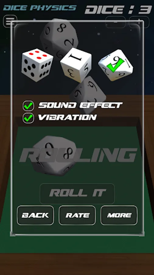 Dice Physics is a dice roller application with beautiful 3D graphics and advanced physics engine.