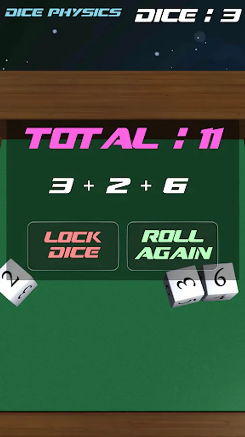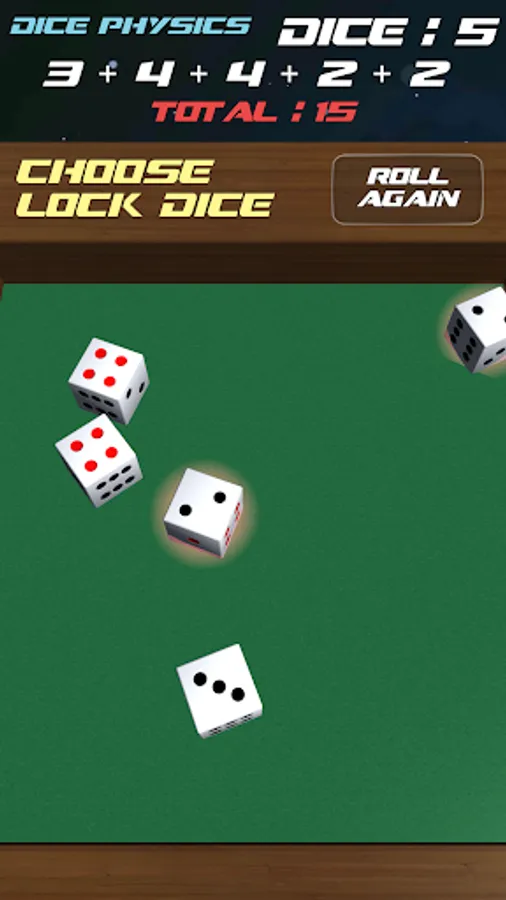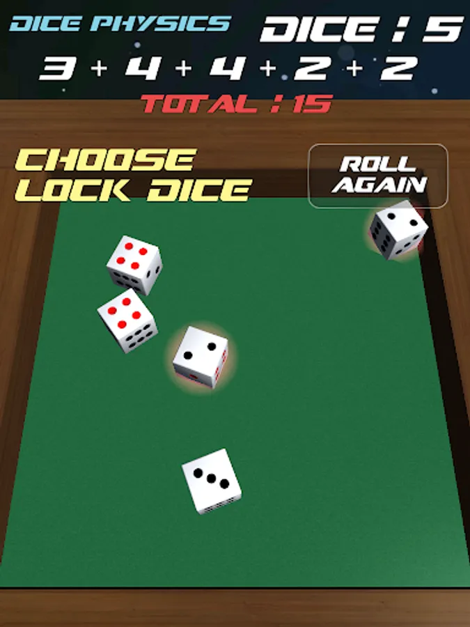 - Lock and release dice by touching (for playing dice games like 'Yahtzee' game)