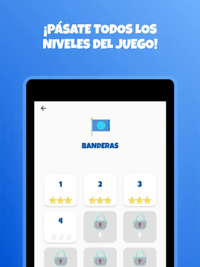 You can enjoy multiple game modes and different levels on flags, capitals, and maps. Each level contains 10 questions, and there is no time limit to answer them. But be careful, you only have 3 lives per level!