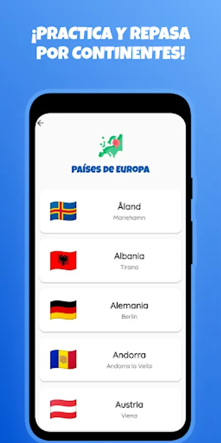 In the practice section, you can study and learn all the flags, country names, capitals, and their location in the world. The app features a simple and user-friendly design that will allow you to enjoy a pleasant gaming experience.