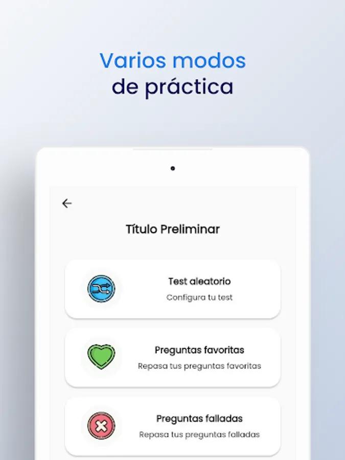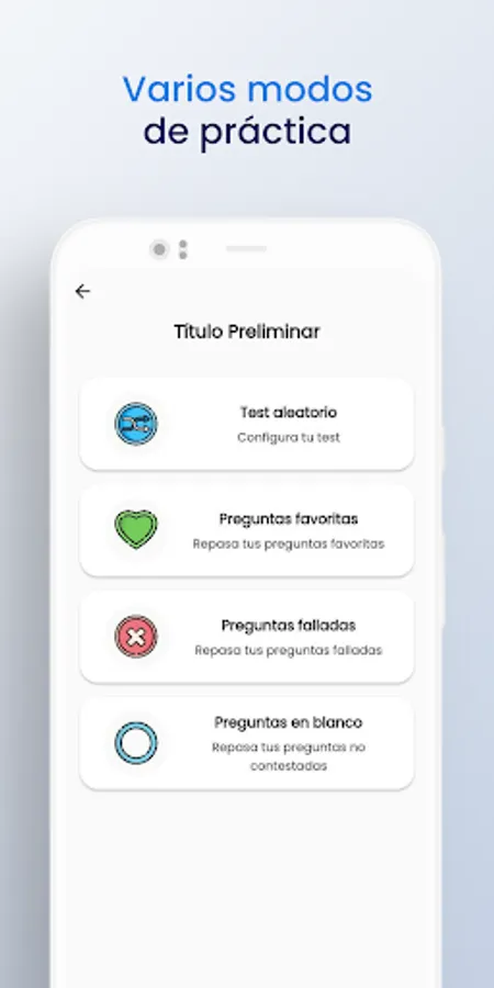 The questions have been grouped by Titles to facilitate study. You will find different functionalities that will make your study more enjoyable and entertaining.