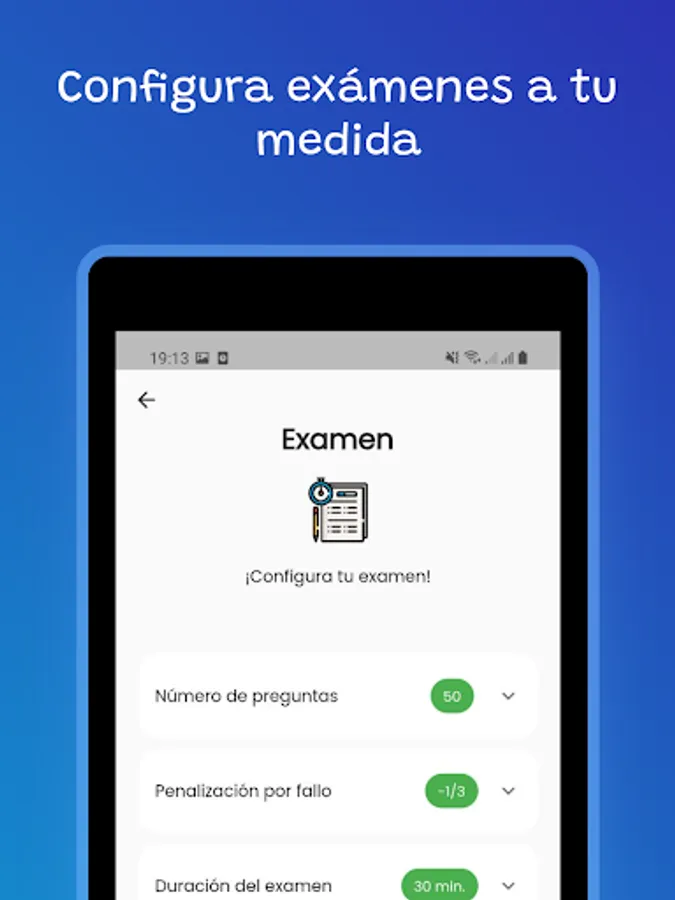 But best of all, you can create custom exams to suit your needs! You choose the duration, the categories and the number of questions.